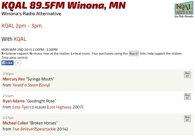 Big thank you to KQAL Winona, Minnesota where True Believer has been in rotation for six months!